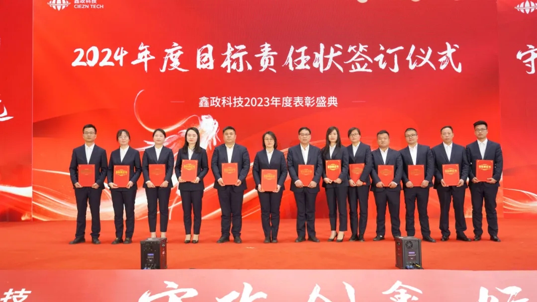 集團(tuán)對(duì)2023年在工作崗位中涌現(xiàn)出來(lái)的優(yōu)秀個(gè)人、團(tuán)隊(duì)和公司進(jìn)行表彰,對(duì)做出卓越業(yè)績(jī)和貢獻(xiàn)的管理干部頒發(fā)證書。各中心(辦)、分子公司負(fù)責(zé)人簽訂2024年度目標(biāo)責(zé)任狀。