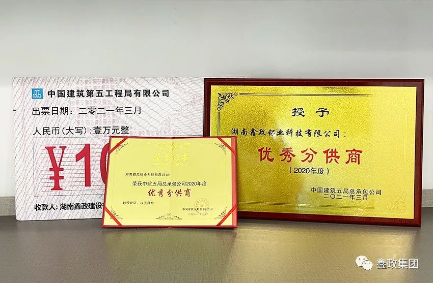 瀏覽次數(shù):1738喜訊連連捷報(bào)傳。近日,在中建五局總承包公司2021年分包(供)商答謝會暨優(yōu)秀分包(供)商表彰會上,集團(tuán)下屬子公司湖南鑫政鋁業(yè)科技有限公司與湖南鑫政建設(shè)有限公司分別喜獲2020年度“優(yōu)秀分供商”與“良好分包商”獎(jiǎng)項(xiàng)。
