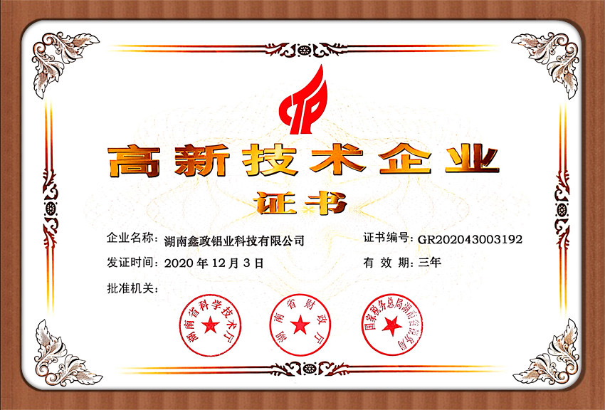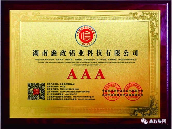 瀏覽次數:1769近日,鑫政集團子公司鑫政鋁業喜報頻傳,再獲殊榮。根據湖南省2020年高新技術企業認定規定,經專家評審、權威公示等程序,鑫政鋁業憑借產品研發、科研人才培養、質量把控等方面的出色表現,榮獲“高新技術企業”榮譽稱號。同時,經過中國企業信用誠信公示服務平臺的嚴格審核,該公司榮獲“AAA級企業信用等級”證書。
