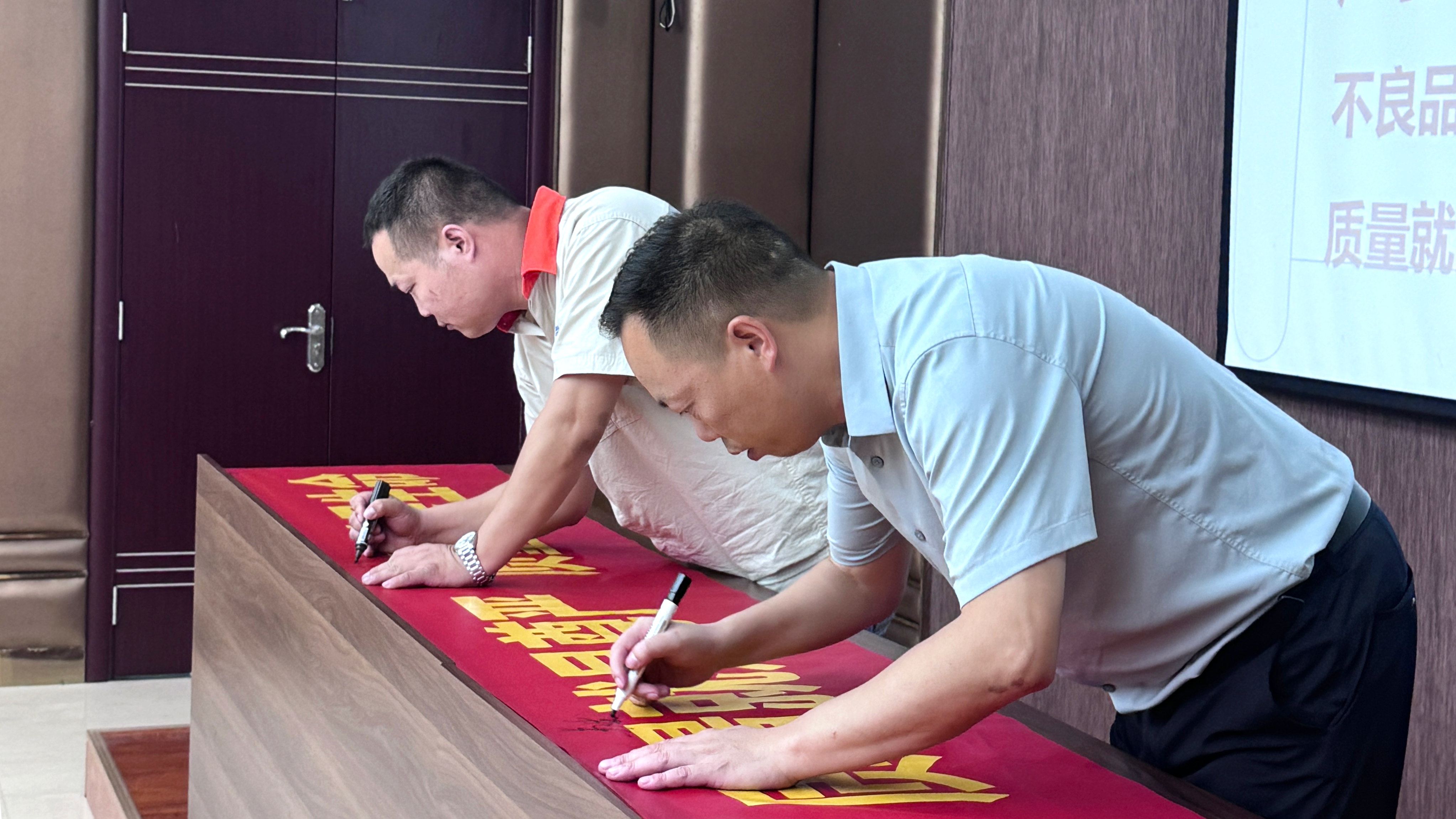 會議尾聲,全體人員在“質量至上”主題橫幅上鄭重署名,并簽署質量責任狀。鑫政新材將始終以技術革新為驅動,以客戶價值為導向,深入踐行“雙碳”目標,通過鋁模大循環模式實現鋁材全生命周期的高效利用,推動綠色低碳轉型,為建筑與新能源領域提供更環保、更高效的解決方案,攜手合作伙伴共創可持續未來。